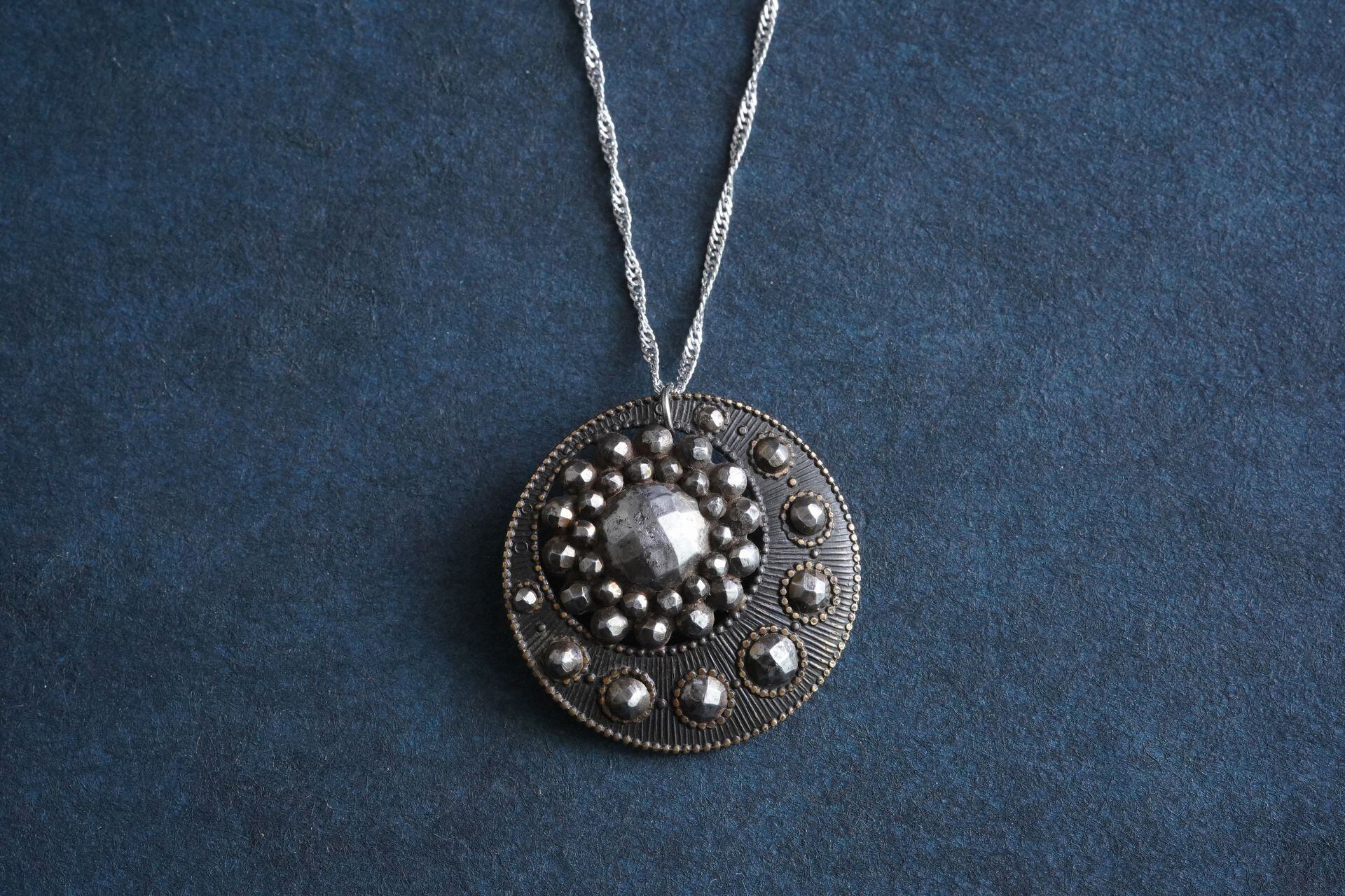 アンティークのメタルボタンをペンダントにしました。