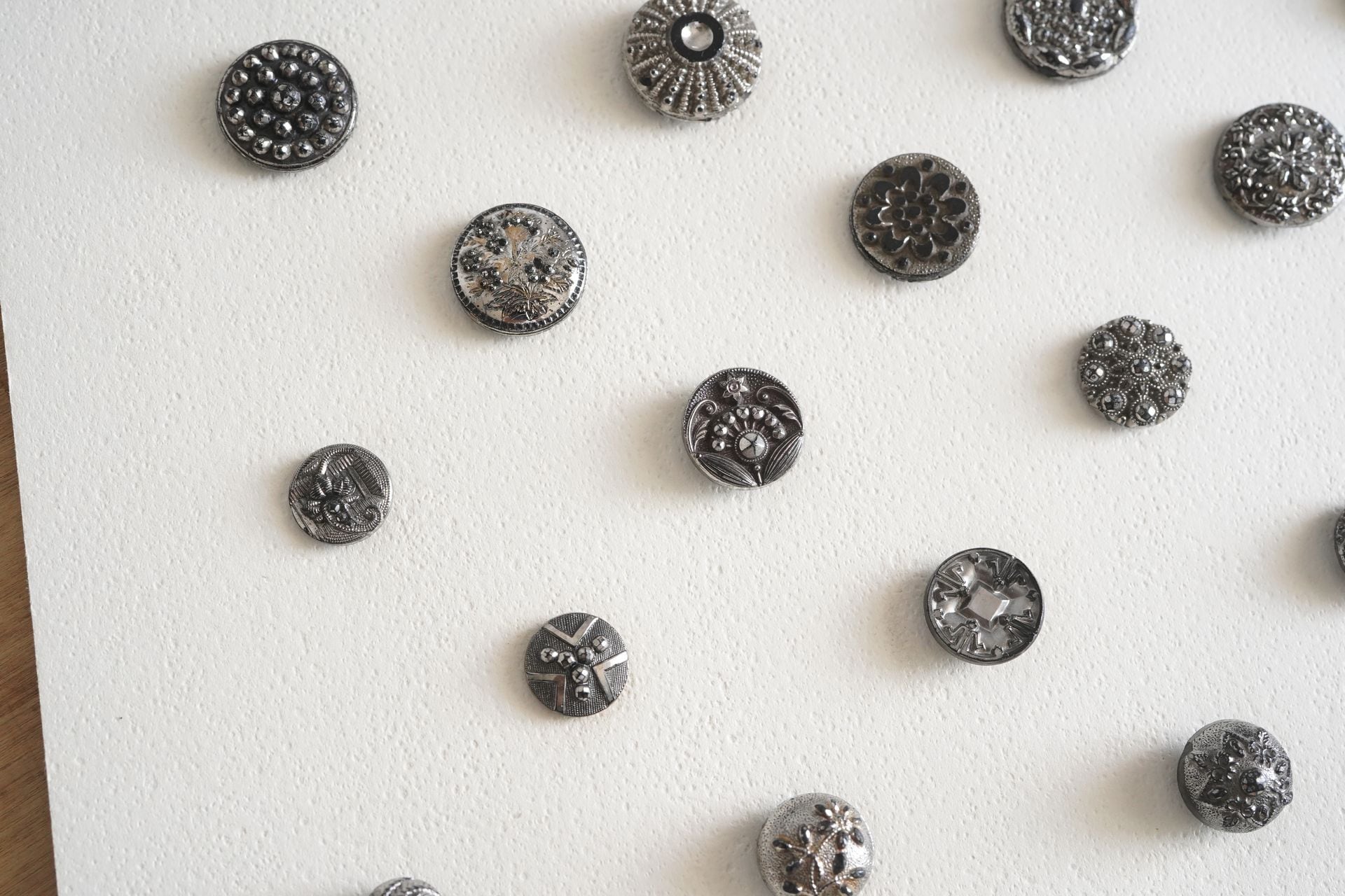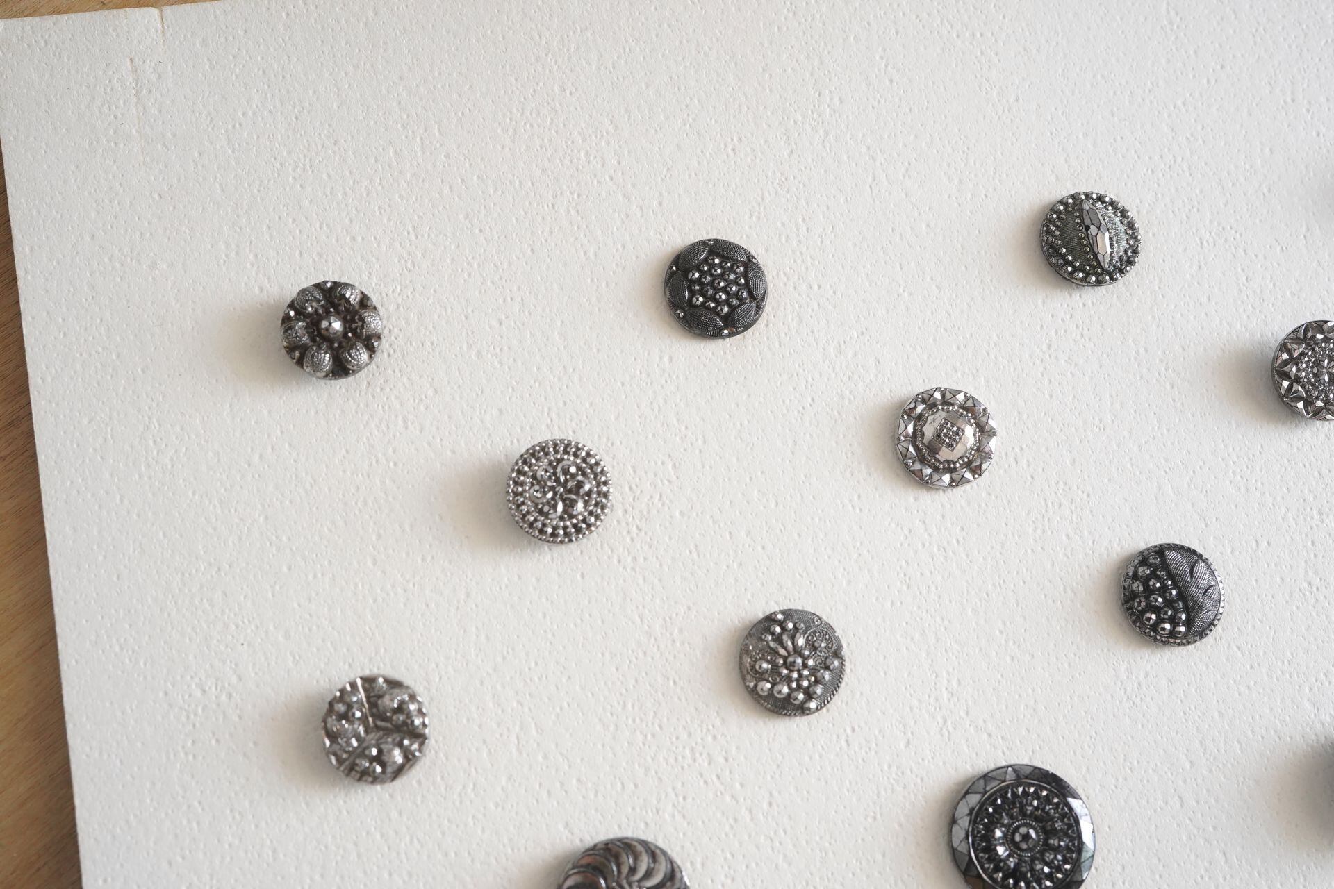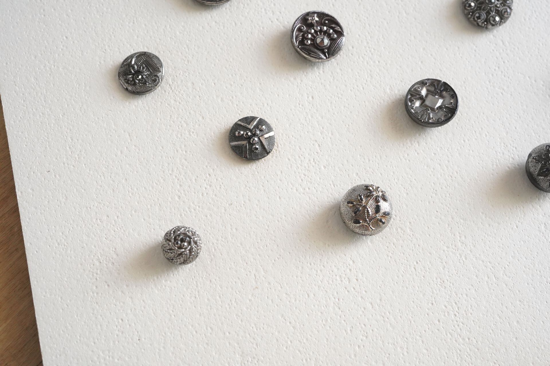 黒ガラスにシルバーを蒸着させた【ラスターボタン】が集められた一枚。