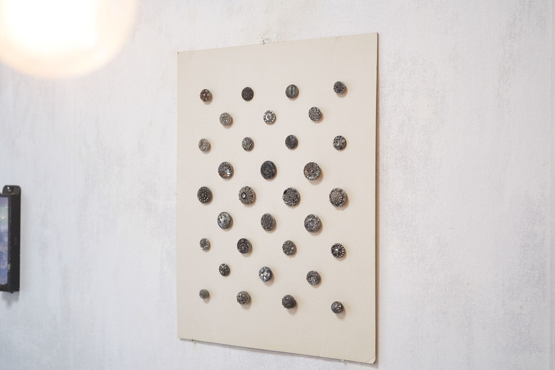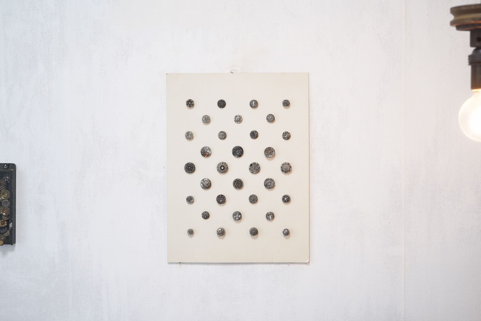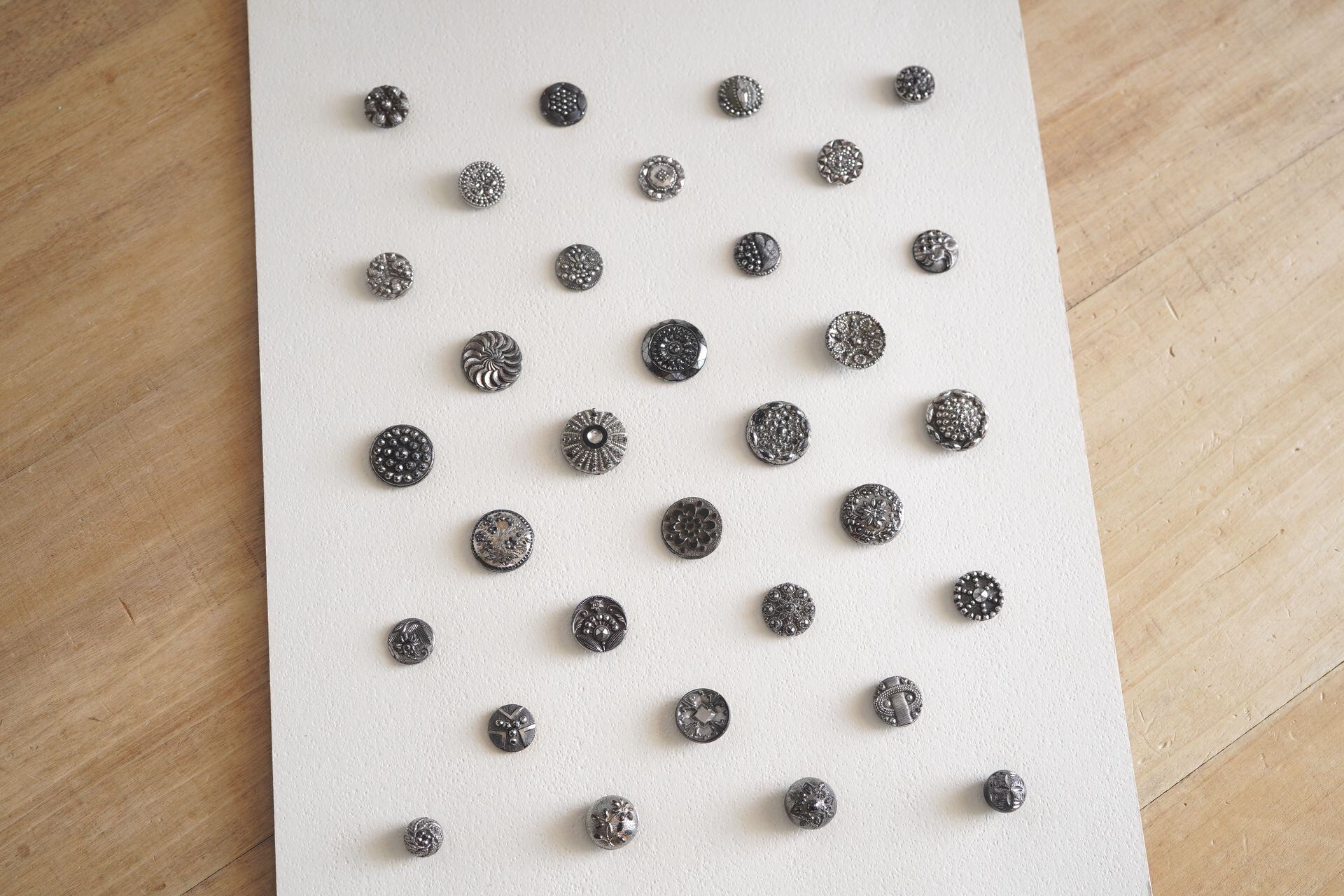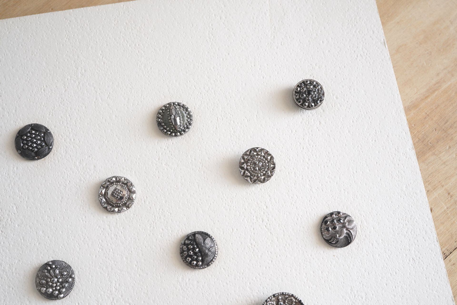 黒ガラスにシルバーを蒸着させた【ラスターボタン】が集められた一枚。