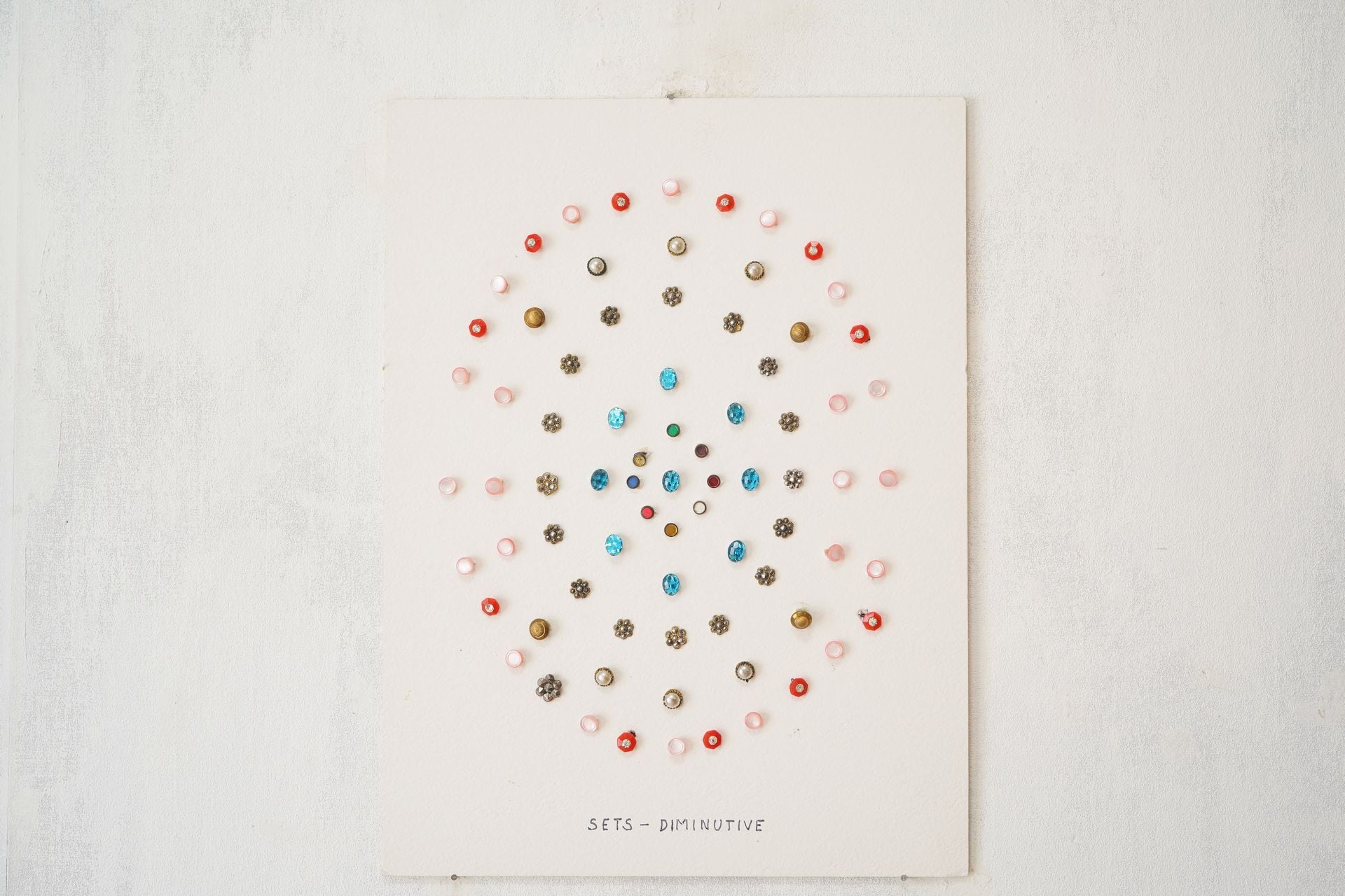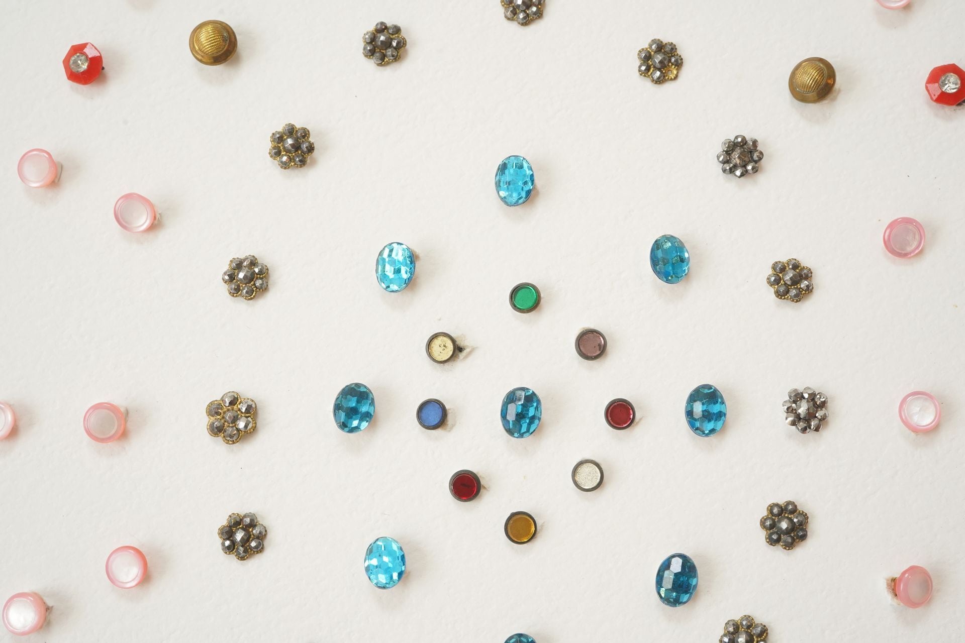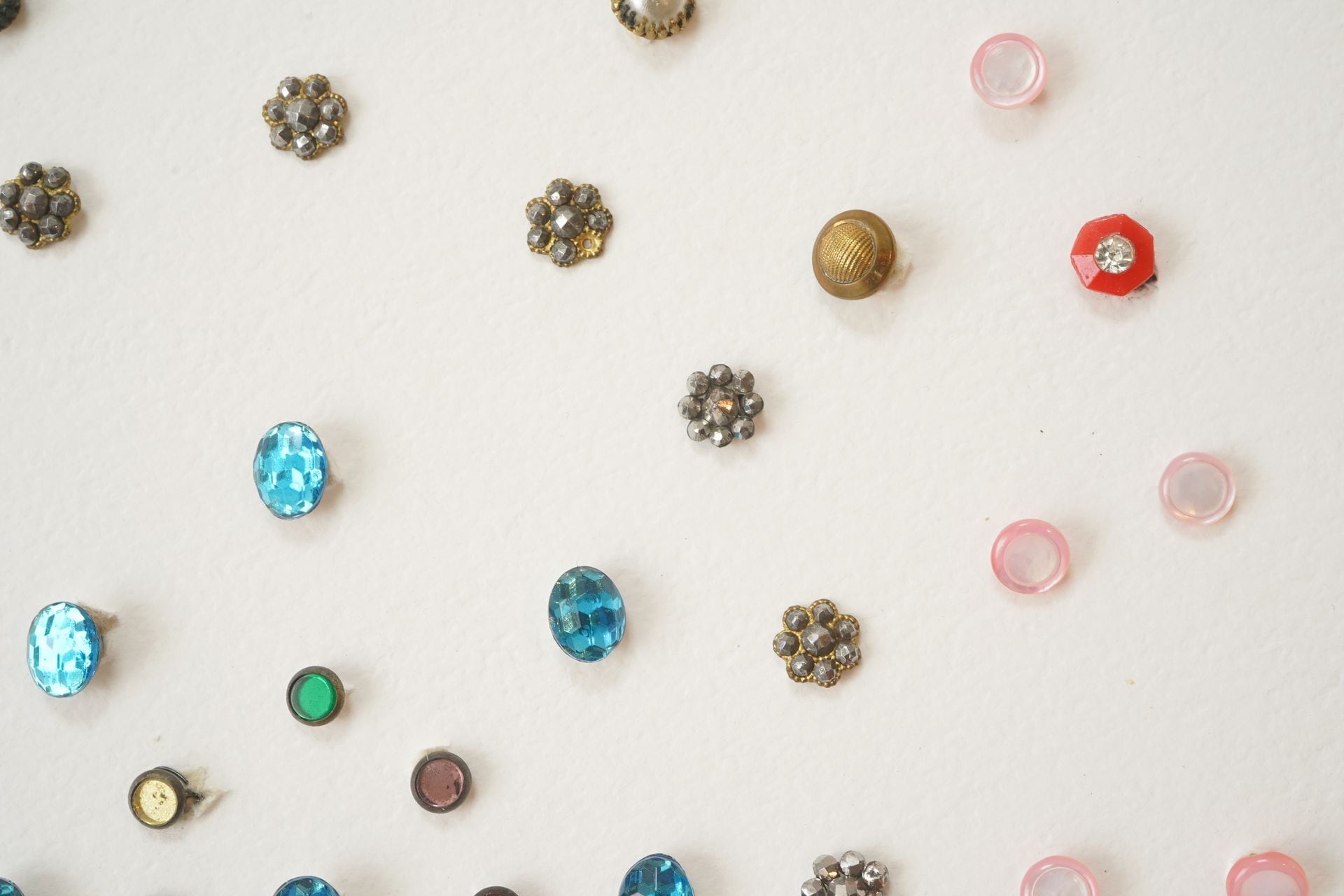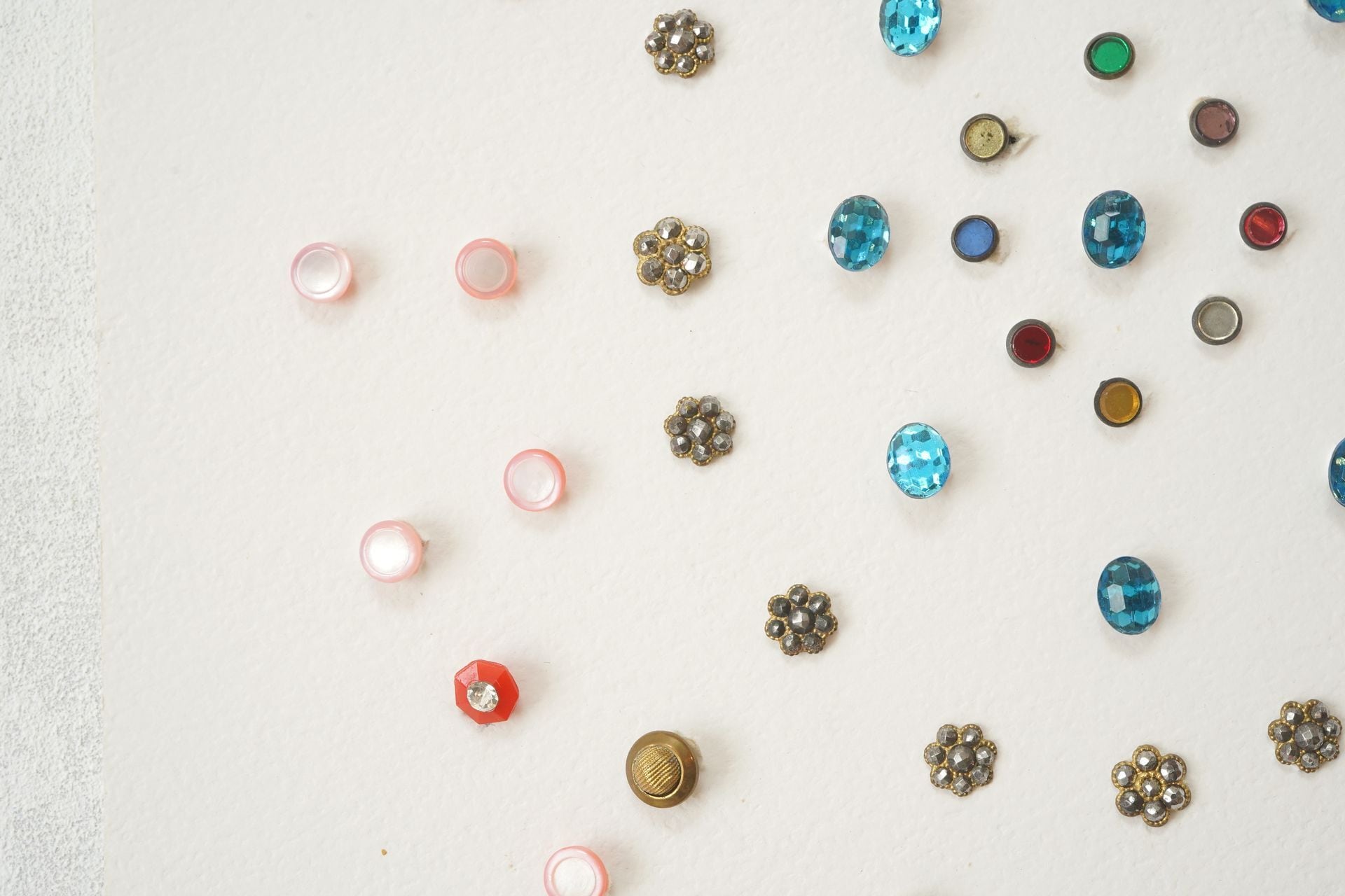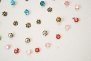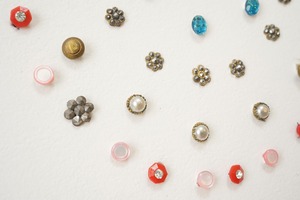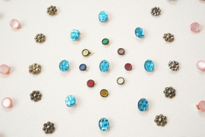 素材はガラスやスチールやメタルなど様々で、サイズはすべて直径1cm以下です。
