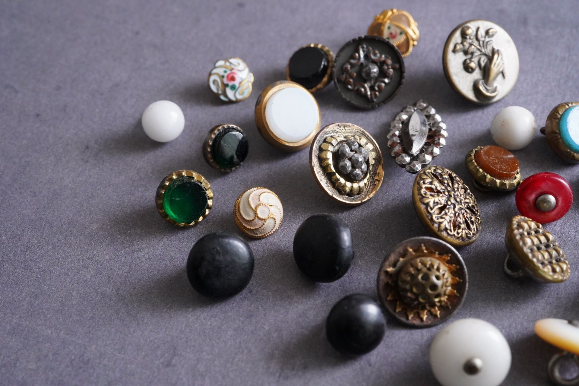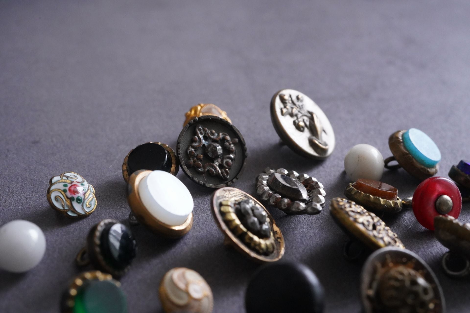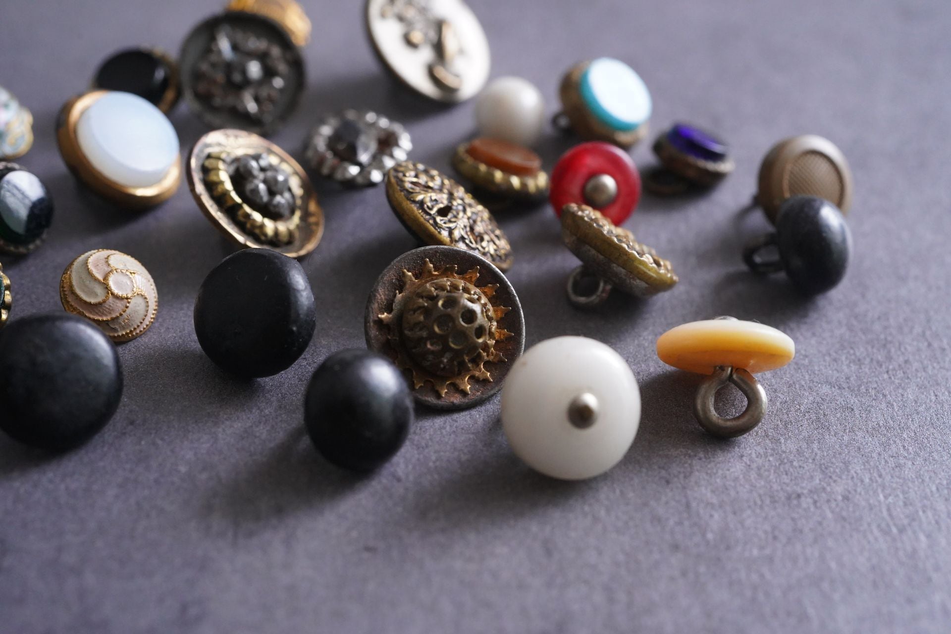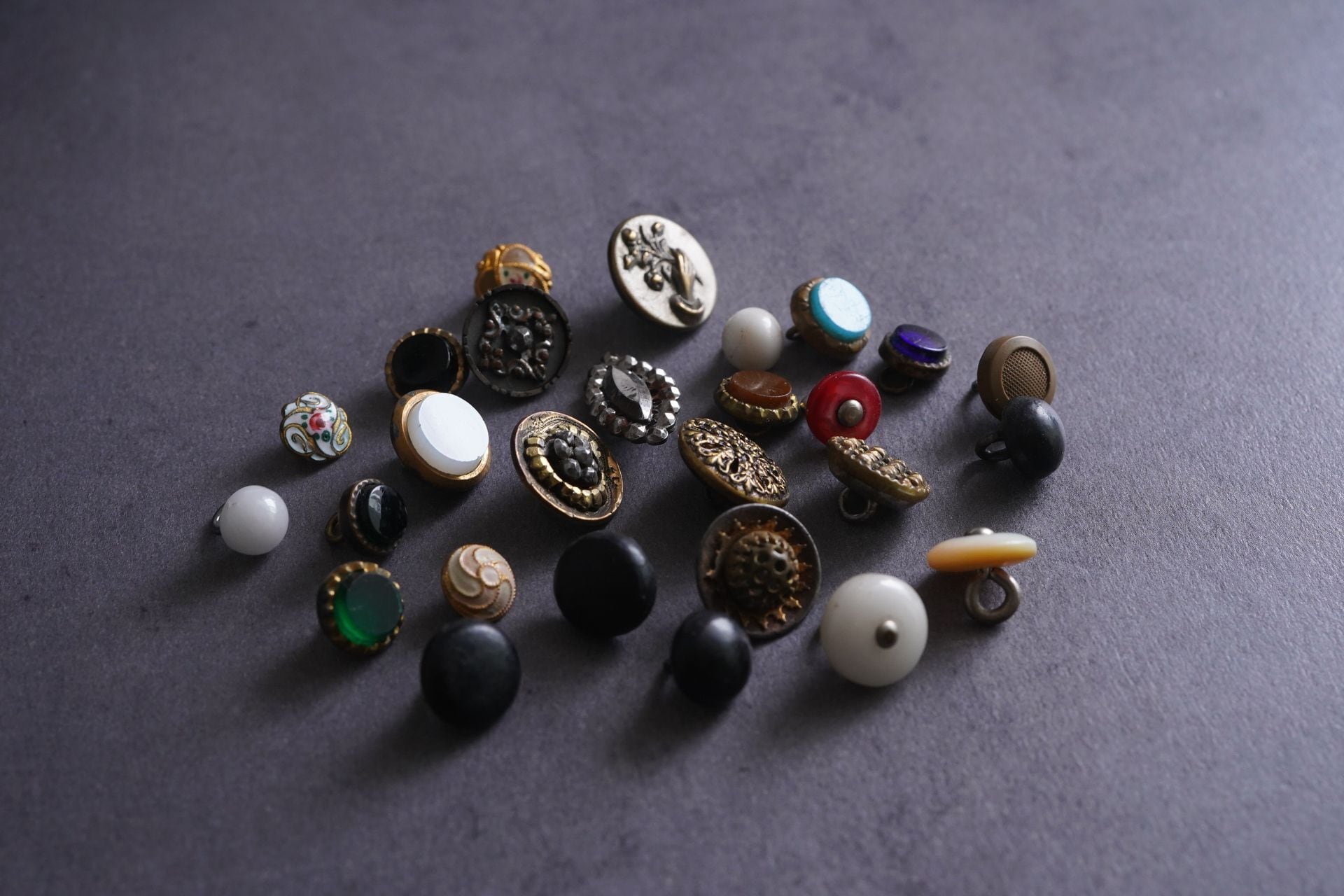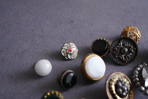 ガラスやメタル、ハンドペイントが施されたボタンやカットスチールを使ったボタンもございます。