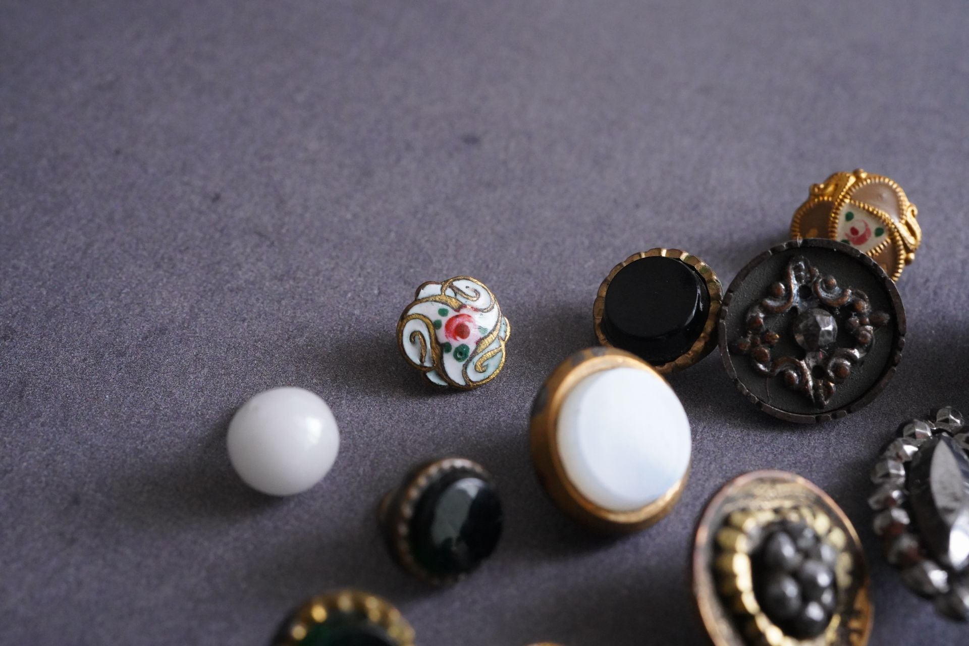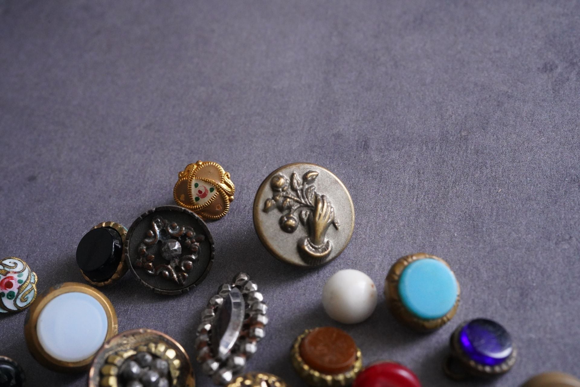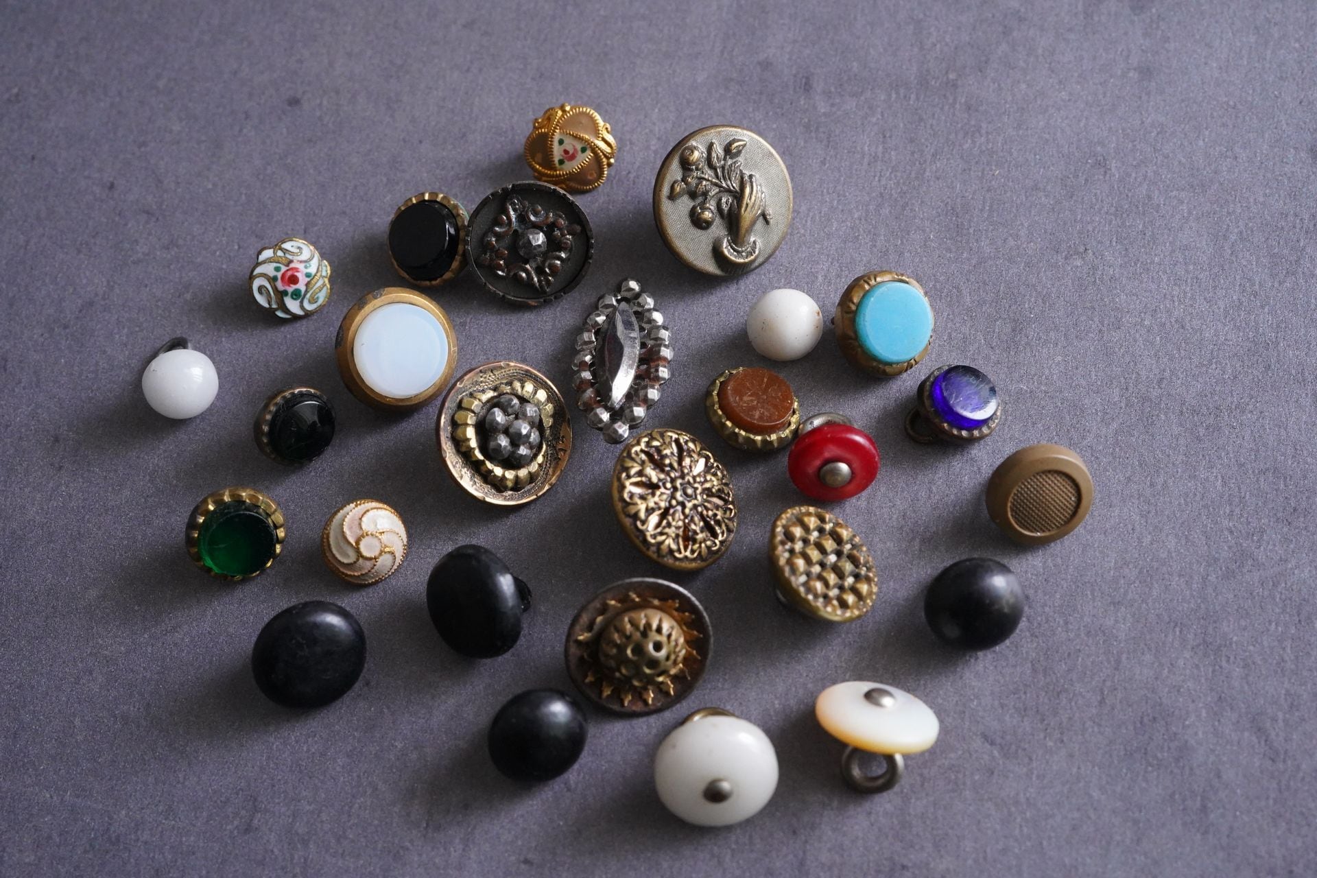 ガラスやメタル、ハンドペイントが施されたボタンやカットスチールを使ったボタンもございます。