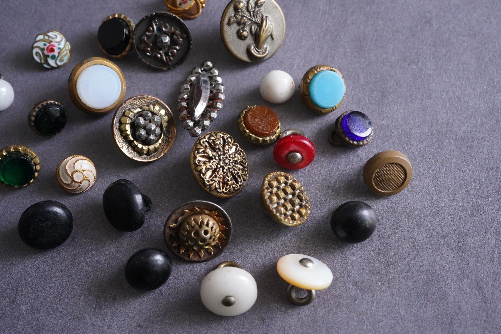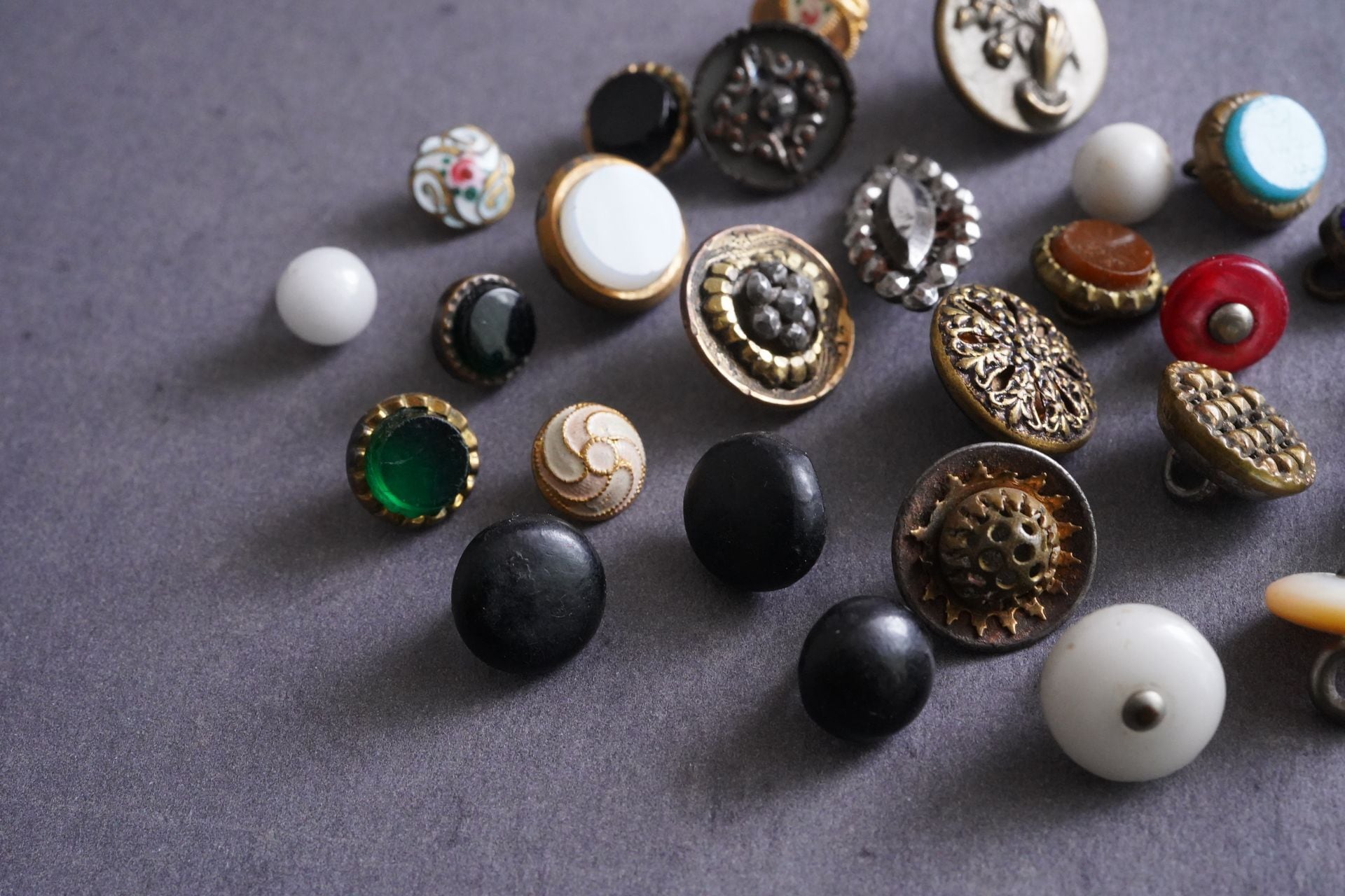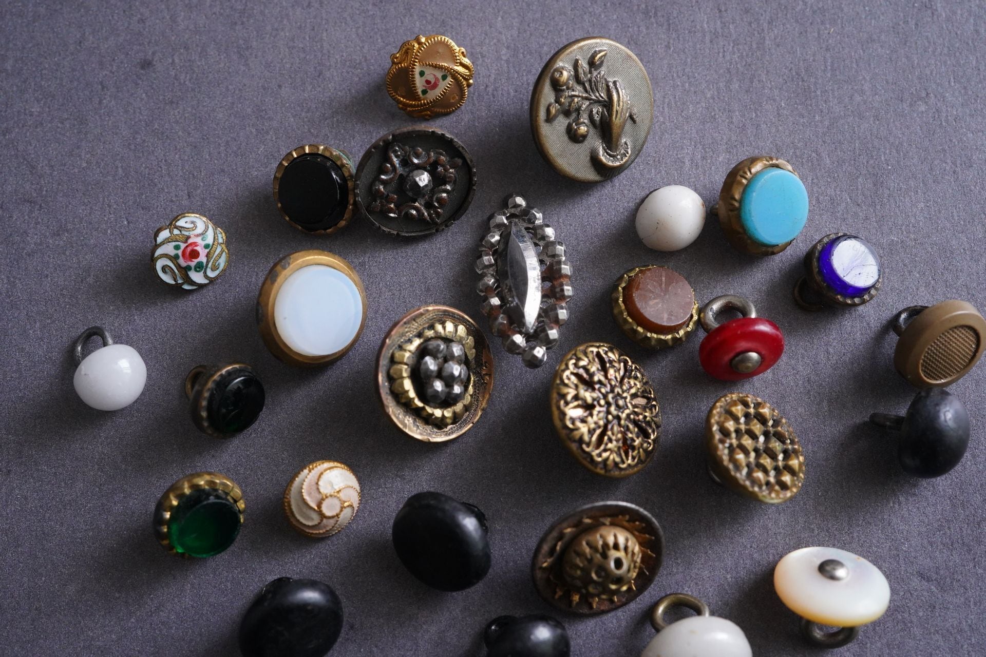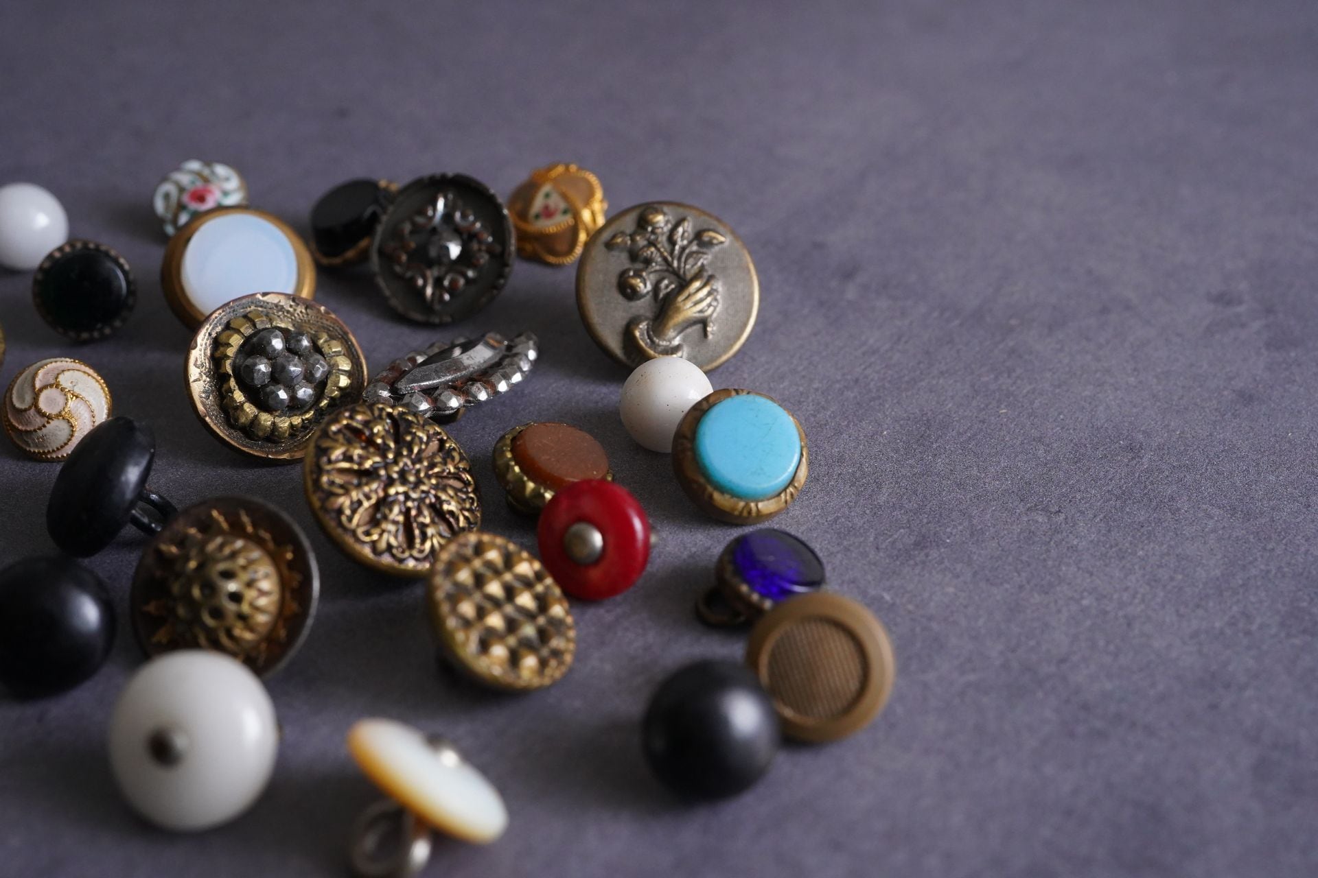 ガラスやメタル、ハンドペイントが施されたボタンやカットスチールを使ったボタンもございます。