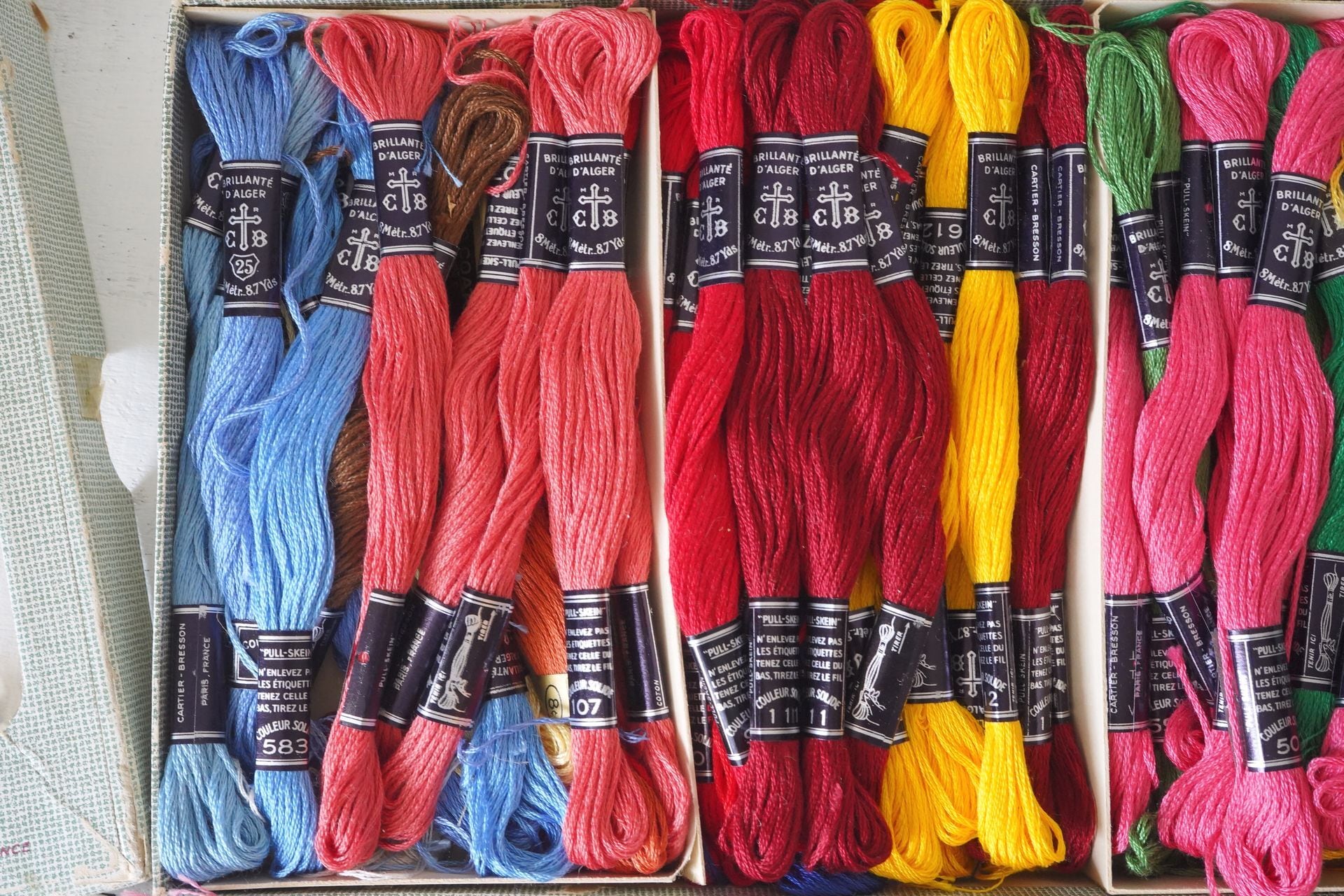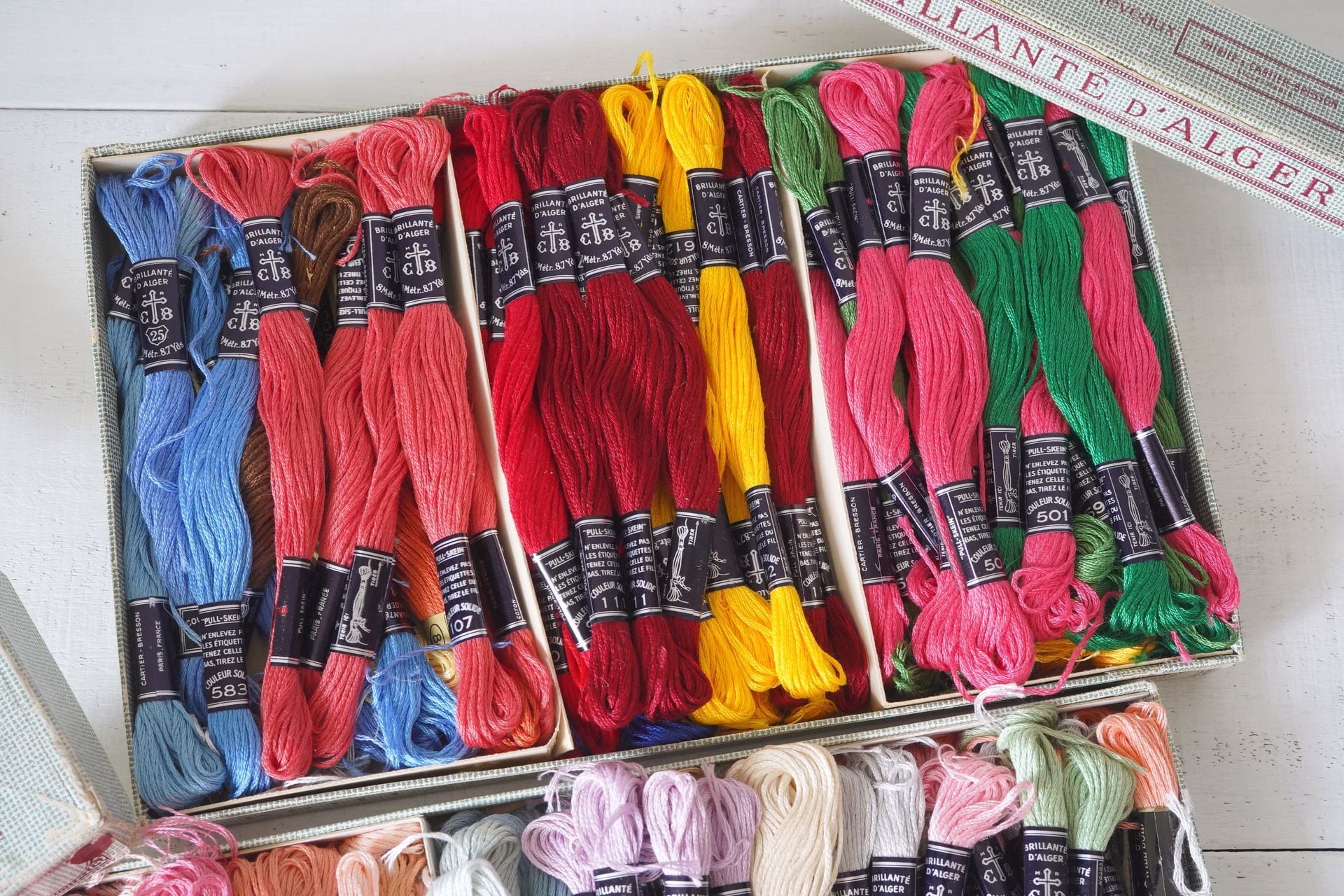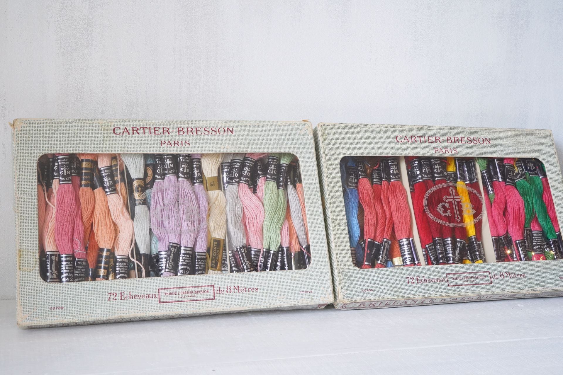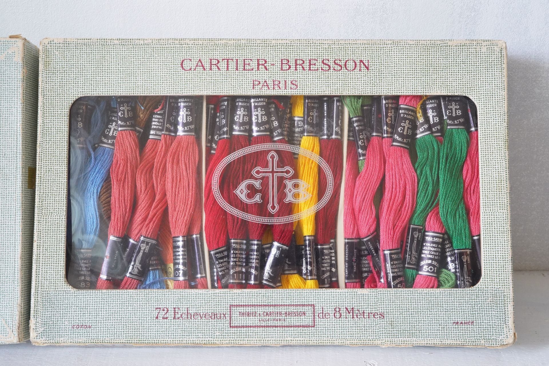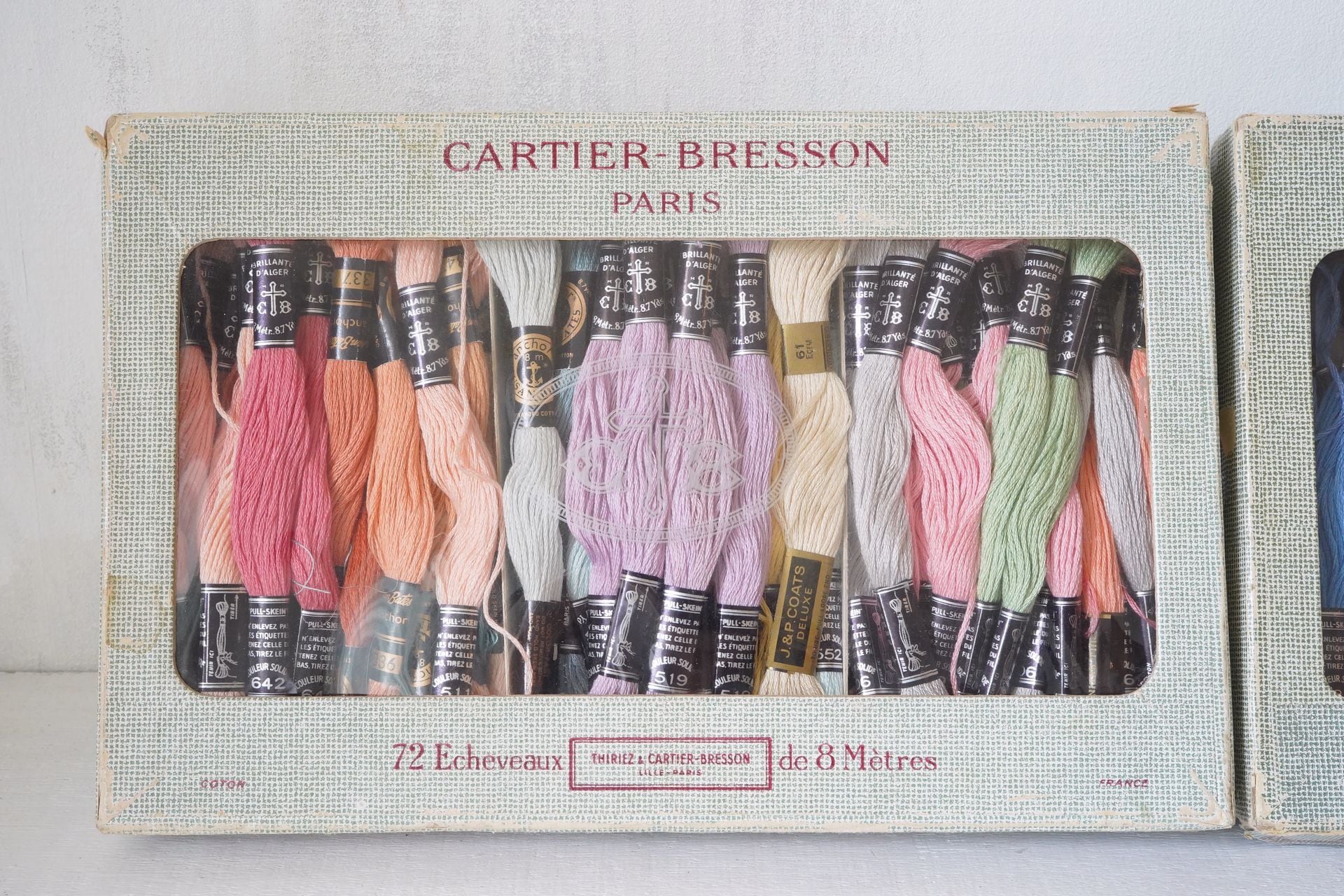 デッドストックの刺しゅう糸がたくさん入った老舗糸メーカー【カルティエ・ブレッソン】の紙箱、2箱セットです。