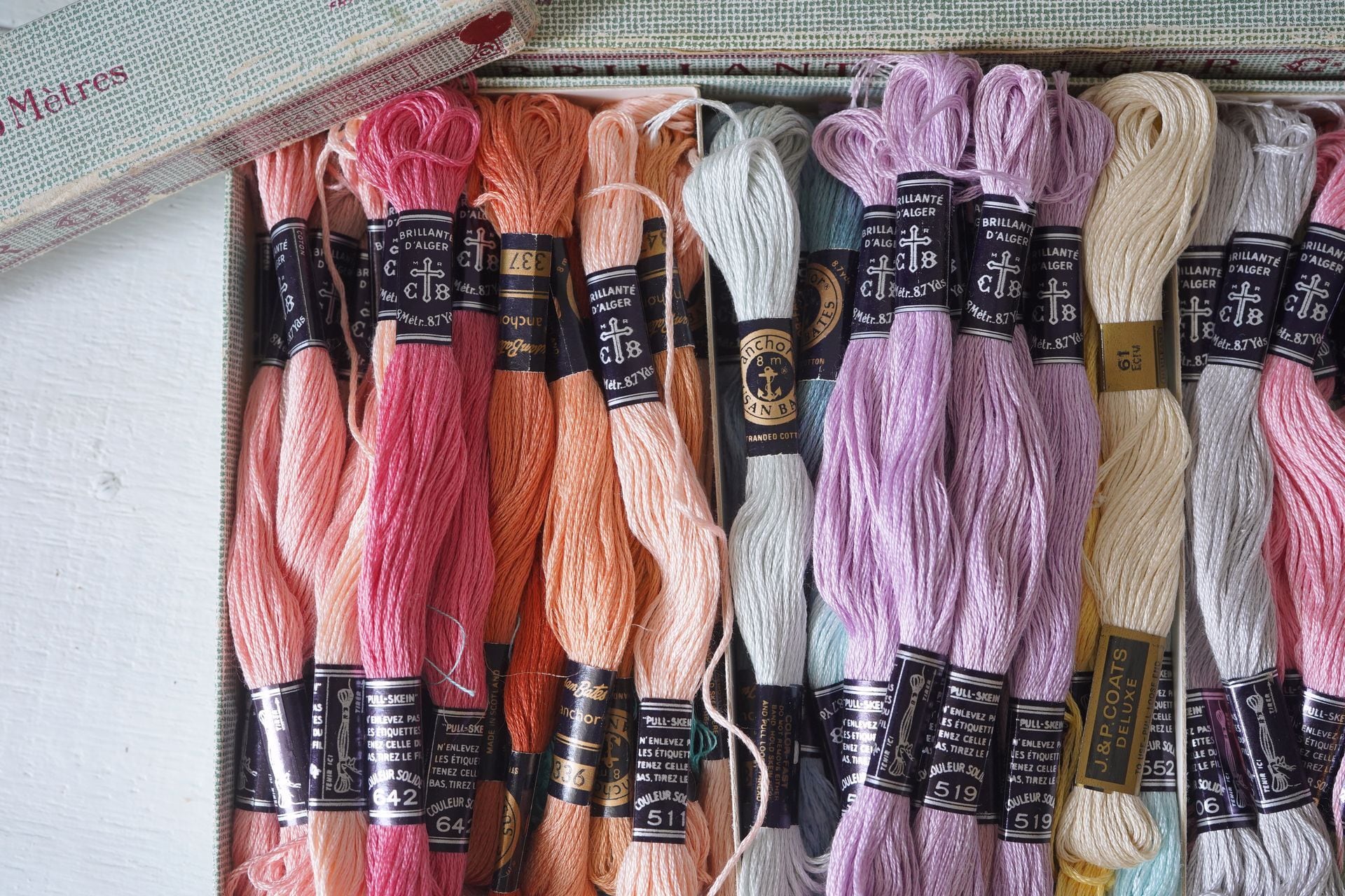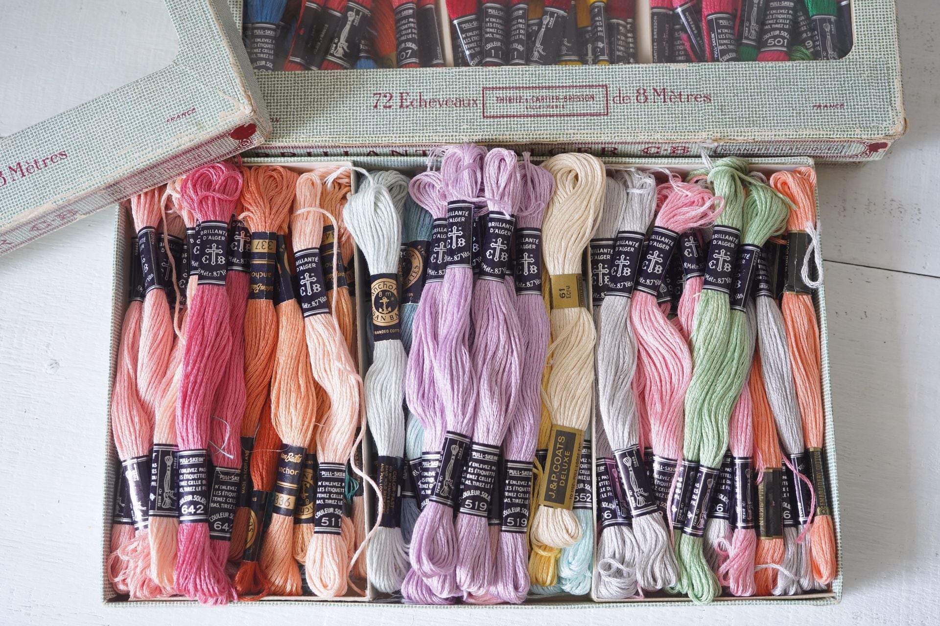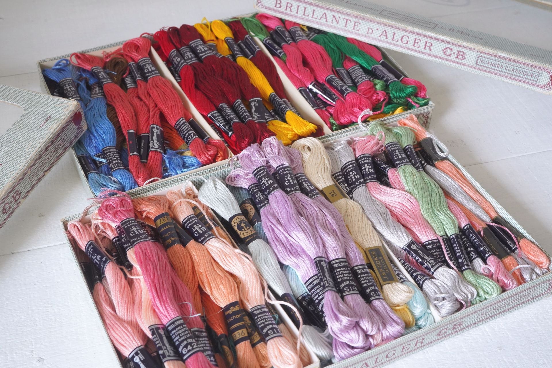 【古い刺しゅう糸と紙箱のセット・フランス】