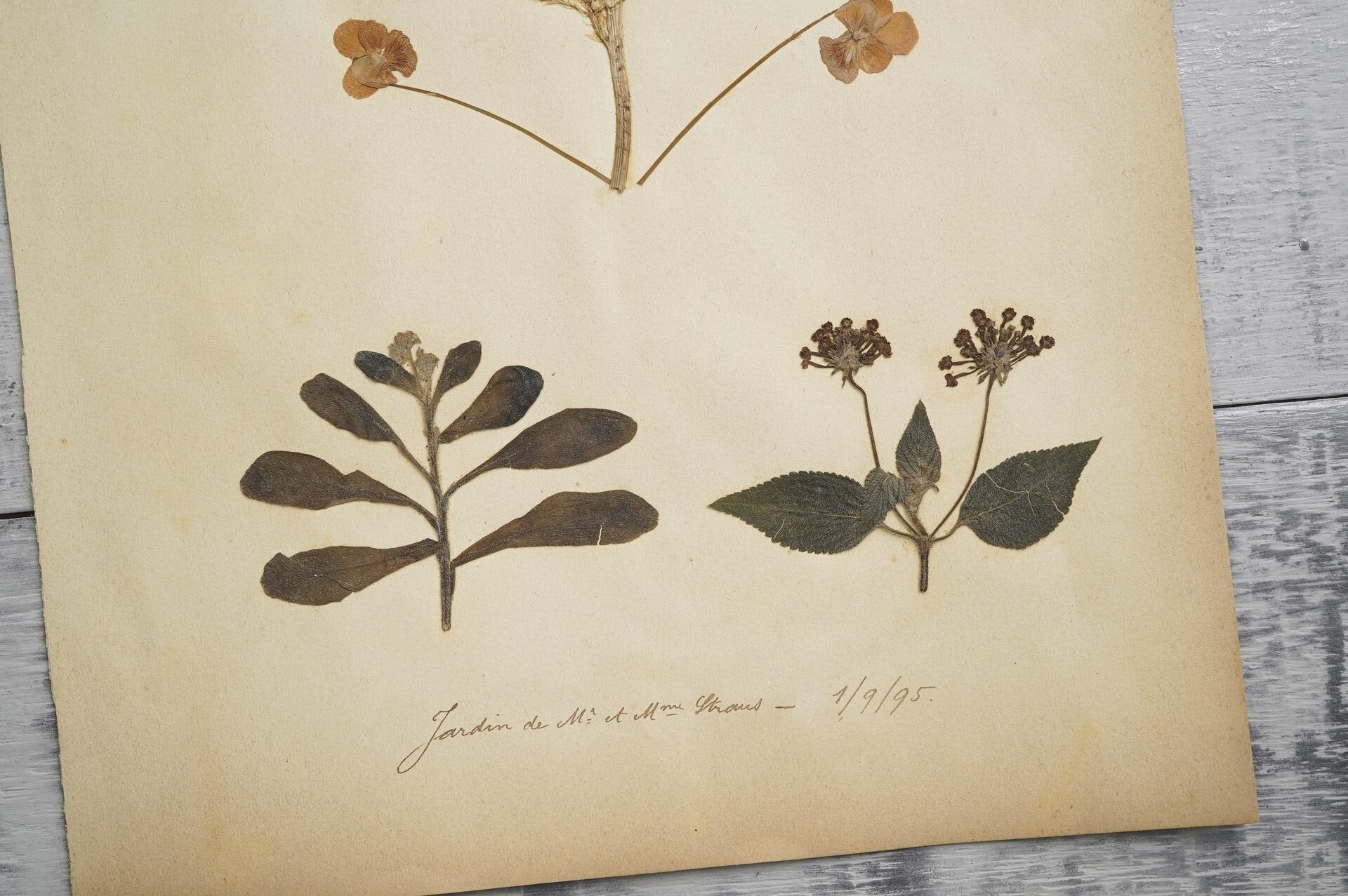 1895年に作られたフランスの古い押し花です。