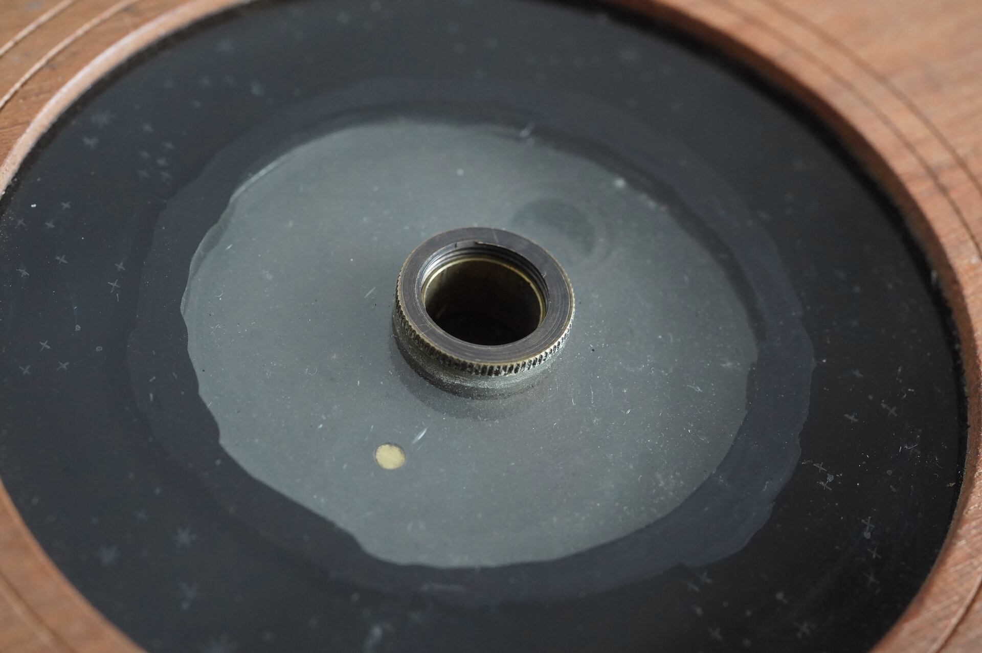 ラベルもしっかりと残っており、ハンドル、ガラスの円盤ともに滑らかに回転します。