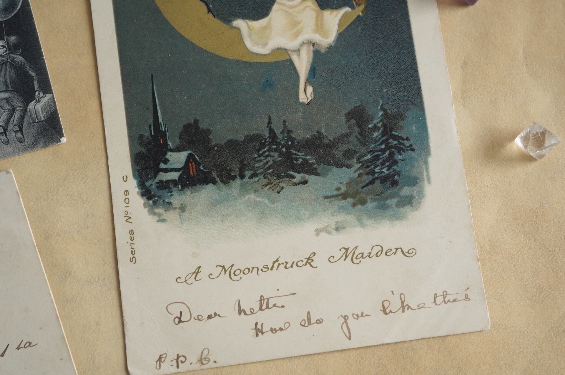 星や月にまつわるアンティークのポストカード3枚セットです。