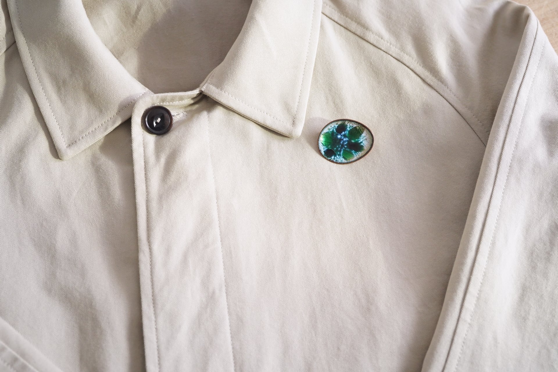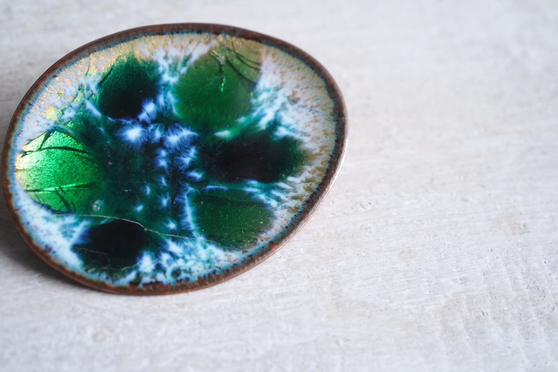 緑のグラデーションが美しいエナメルが施されています。