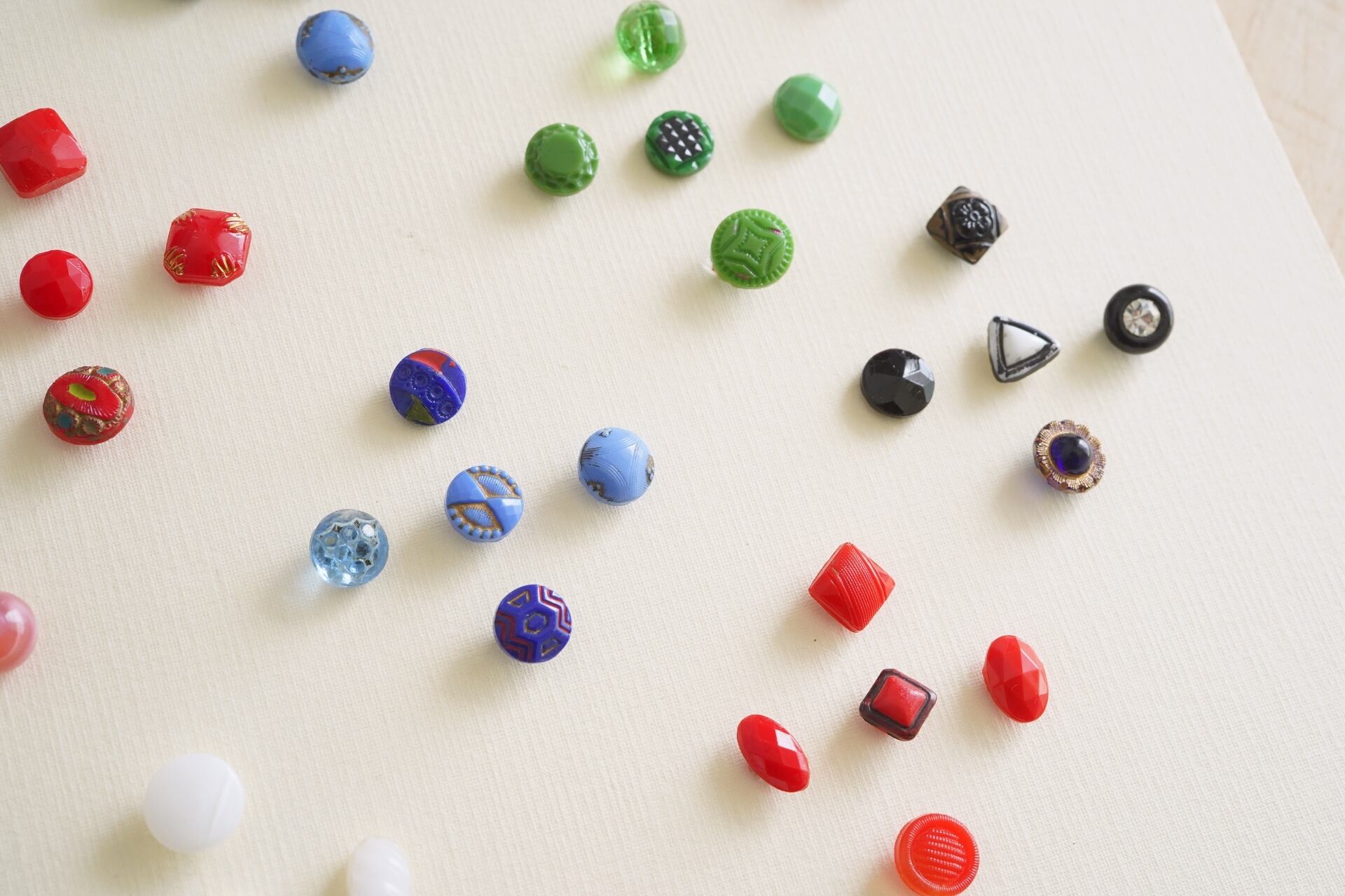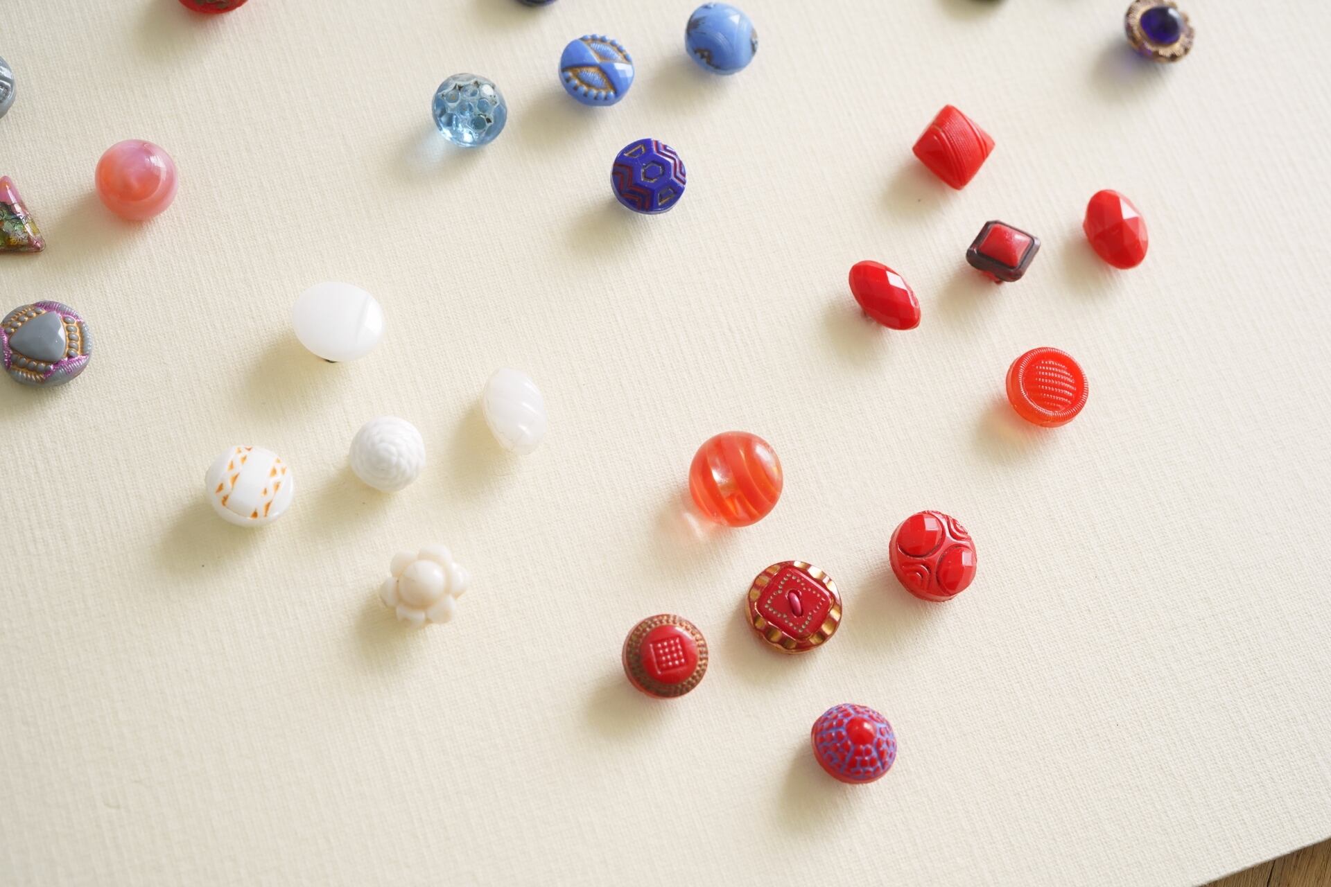 小さくて色とりどり、可愛らしくて個性的なボタンがこれだけ集まっているとワクワクしますね。