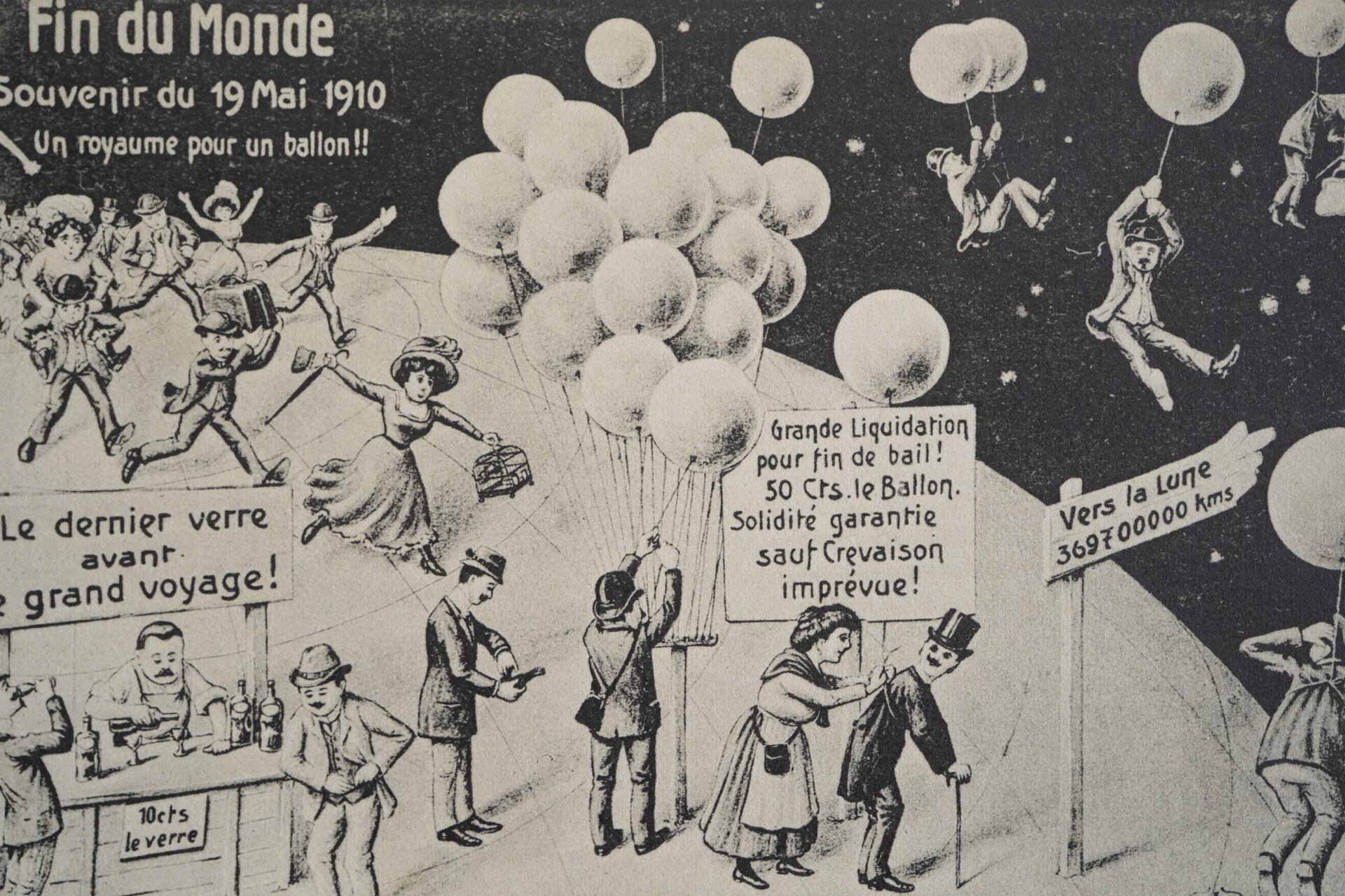 もう一枚は彗星の地球接近がきっかけで地球から脱出する人々。