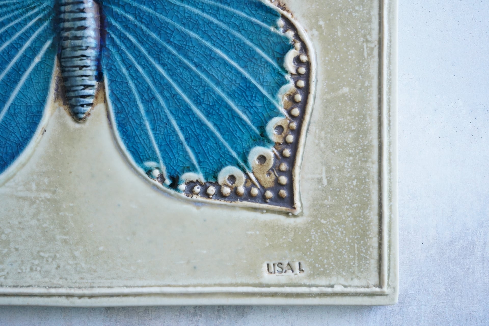 【リサ・ラーソン 陶板 青い蝶】