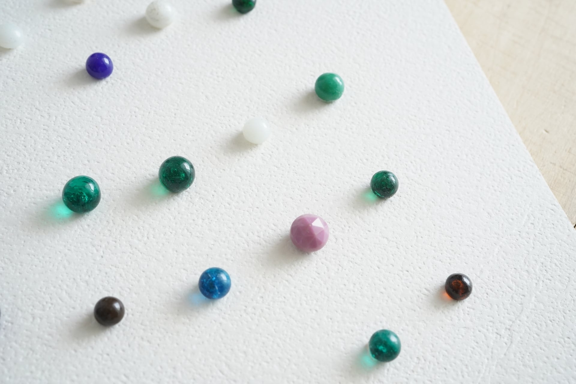 色とりどりの小さな球体ボタンたち。