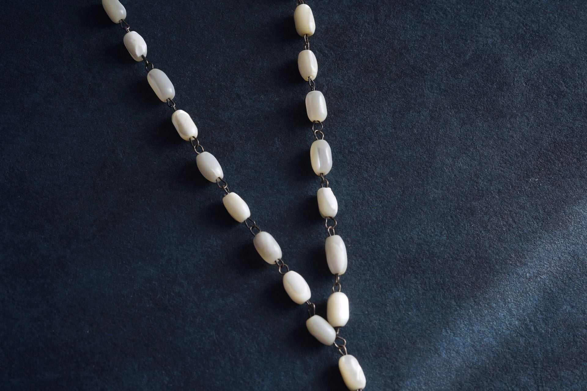チェーン部分にもトップと同じ貝のビーズが一つ一つ手作業で繋げられています。